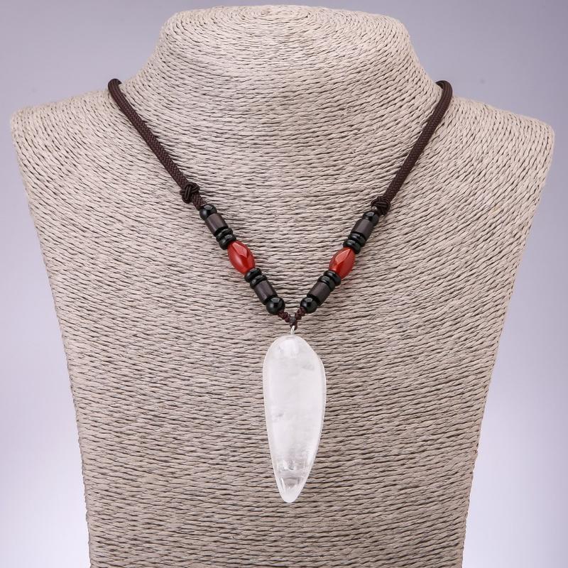 Кулон из натурального камня Хрусталь 20х50мм (+-) на шнуре L-60см