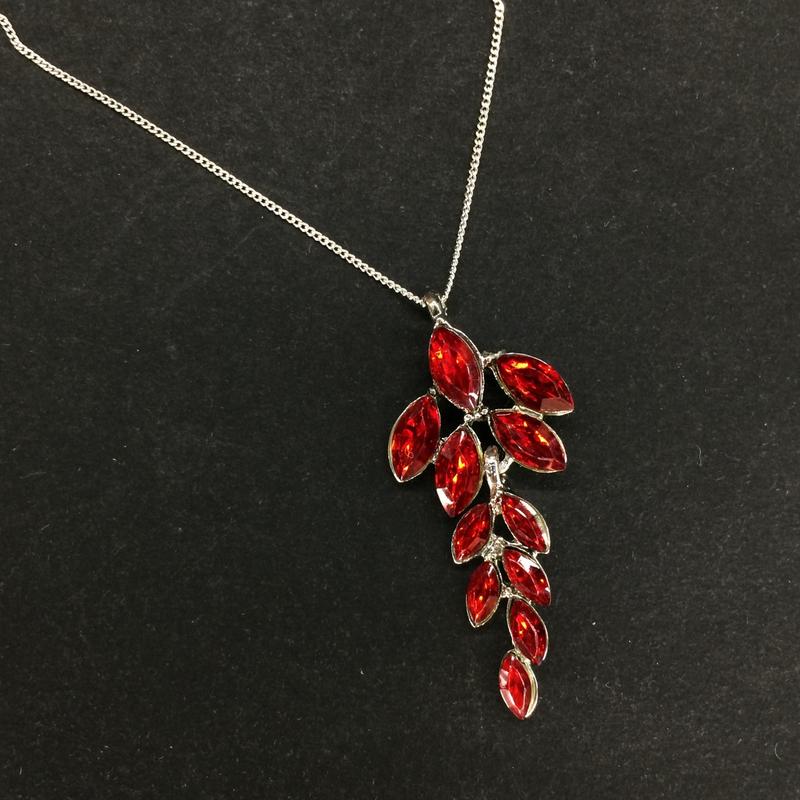 Кулон с красными стразами h-3,8см на цепочке (покрытие родий) L-39,5см
