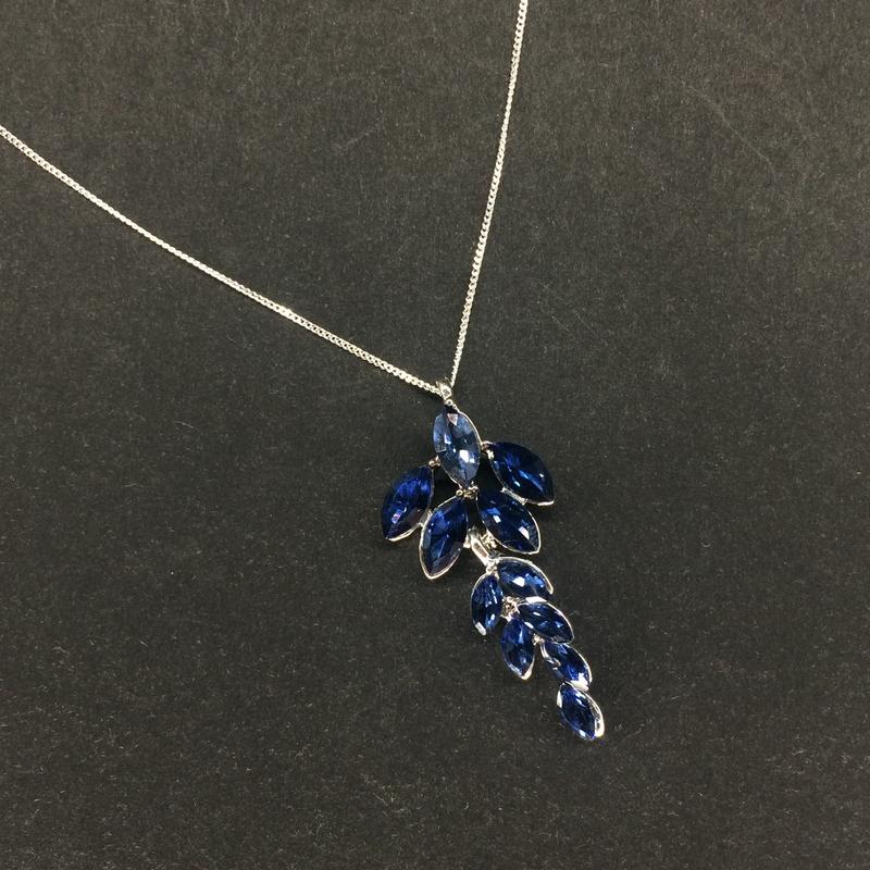 Кулон с синими стразами h-3,8см на цепочке (покрытие родий) L-39,5см