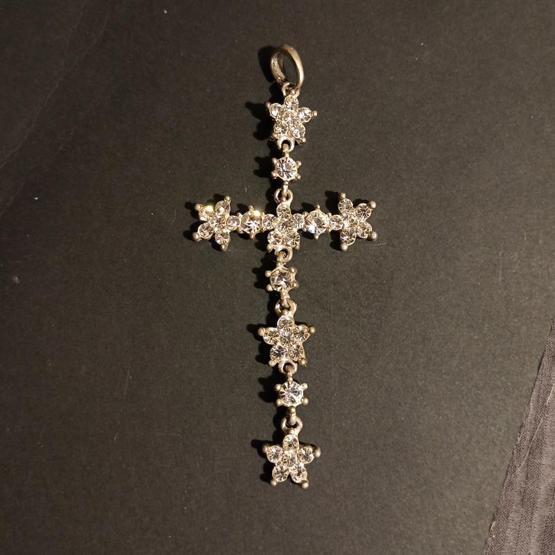 Крест из подвижных элементов со стразами, которые красиво переливаются, фото не передает. Все стразы на месте.