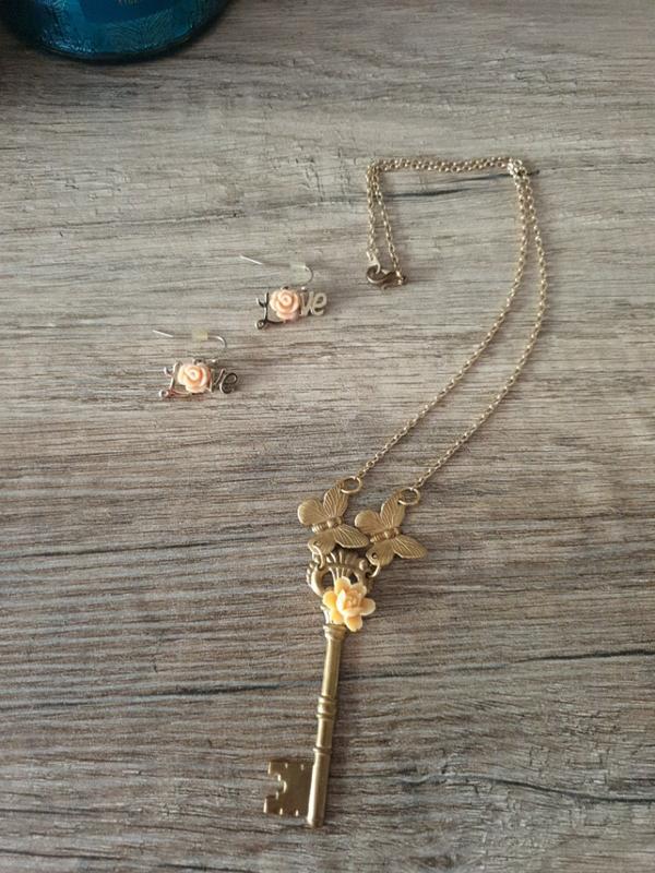 Витончені сережки Love з квіткою і кулон у вигляді ключа з метеликами. Довжина кулона 42 див. Продам комплектом. Товар 7
