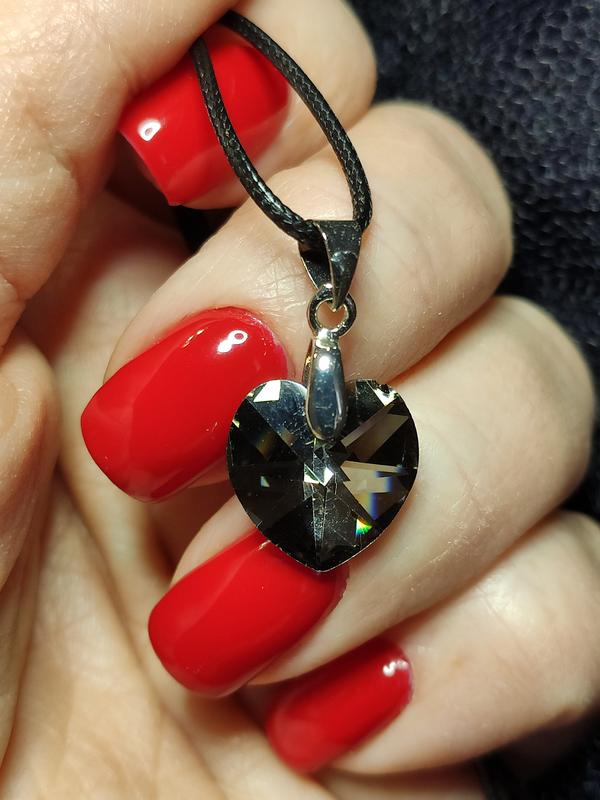 Маленьке чорне сердечко 🖤, а блиску багато✨ Кулон на вощеному шнурі. Кулон на меморі проволоці(проволока з пам'яттю, добре тримає форму) Сердечко «Preciosa (Чехия) Ornela» в чорному кольрі у вигляді кулону та срібного кольору фурнітурі.
