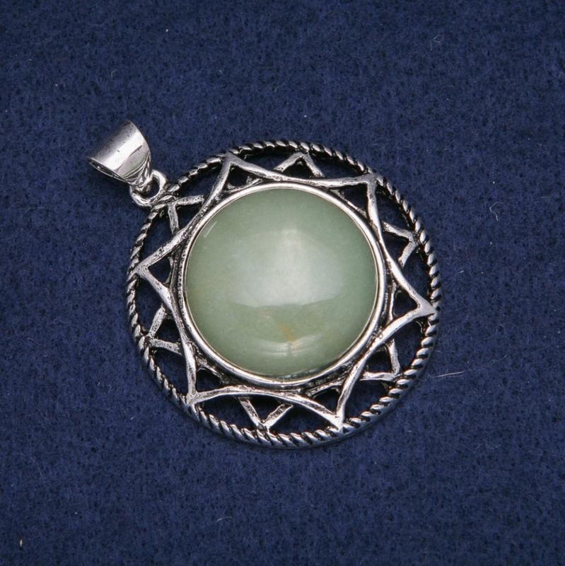 Кулон с камнем Нефрит в оправе под старину 40х46мм