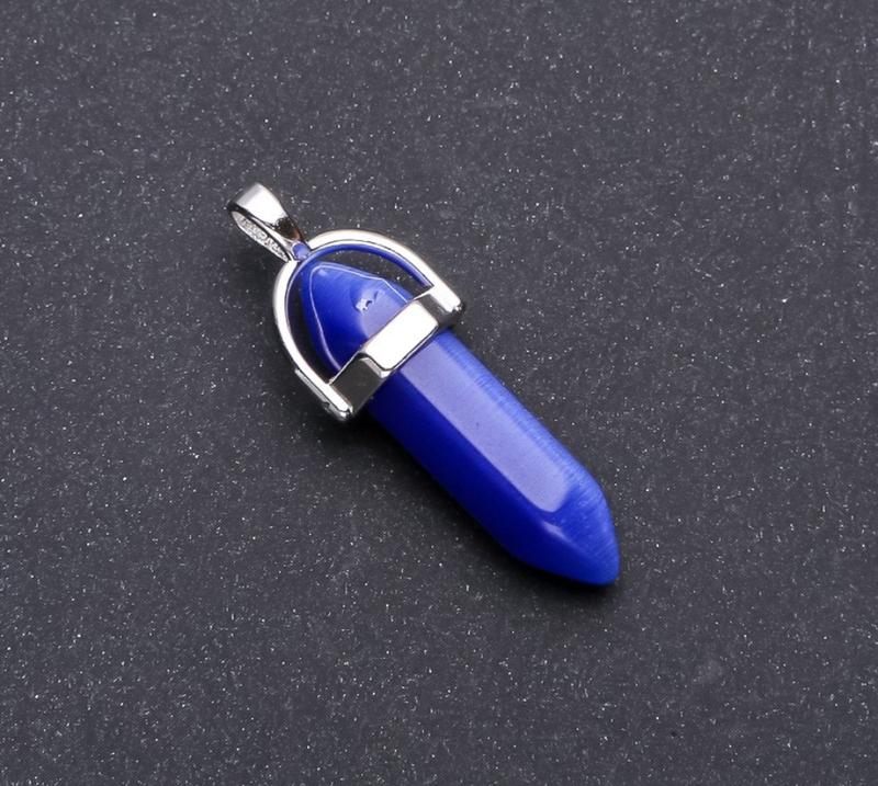 Кулон Кошачий глаз синий шестигранник 8х35х41мм