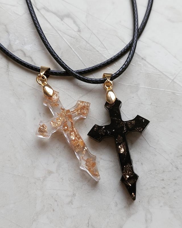 ♧New♧ 🖤 Парні кулони хрестики із золотою поталлю 🖤 З ювелірної епоксидної смоли💎 •Упаковка та подарунок у комплекти)🎁 •Хрестик: 3,5см •Шнурочок: 45см •Швидка доставка🚀 Ціна за пару🔥