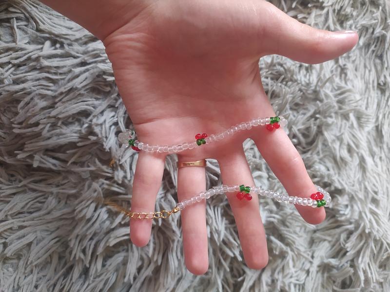 Ожерелье с бисера с вишенками, ни разу не носилось, новое