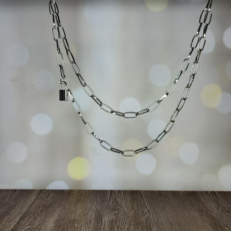 Подвійний ланцюжок із замочком на джинси, штани, штани, спідницю, одяг (цеп0006)