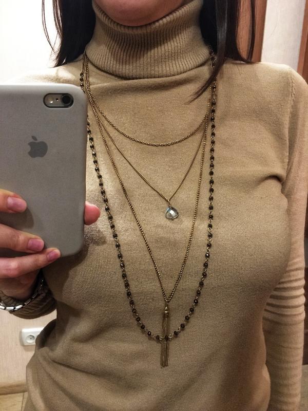 Многослойная цепочка. Бижутерия в приглушенно-золотом оттенке.