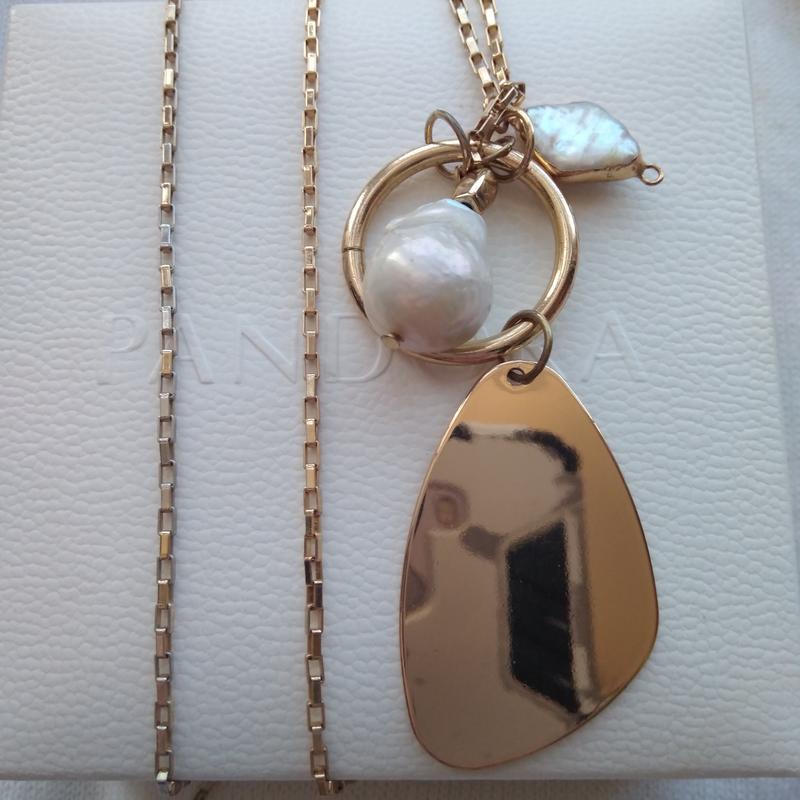 Цепочка,цвет золота с натуральным жемчугом. В реальности намного красивее фото. Матерьял-металл и жемчуг. Длинная.