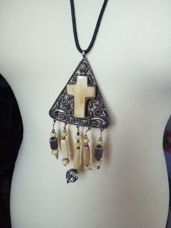 шикарная стильная подвеска из металла и натуральной кости . Из Индии. винтаж 80 е годы долгие годы бережно хранилась в шкатулке и не была в употреблении шнурок под кожу новый не винтажный ОООчень шикарно смотрятся. для тех кто любит крупные украшения красиво смотрится давно не в употреблении. приятная деталь образа есть у меня в объявлениях много разной бижутерии винтажной и ручной работы приобретая несколько вы экономите на пересылке пишите спрашивайте делаю дополнительно фото отвечаю в течении суток пересылка после оплаты Новой почтой=замовлення+ беспечна оплата