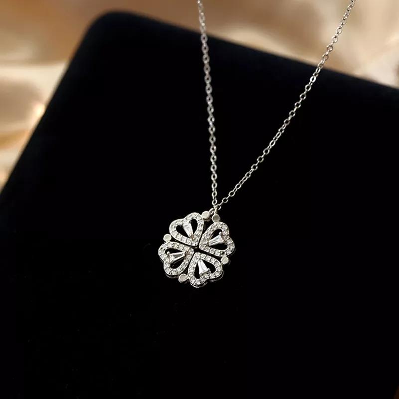 Магнитная подвеска-трансформер с клевером, подвеска с сердечками, серебро, кулон, украшени...