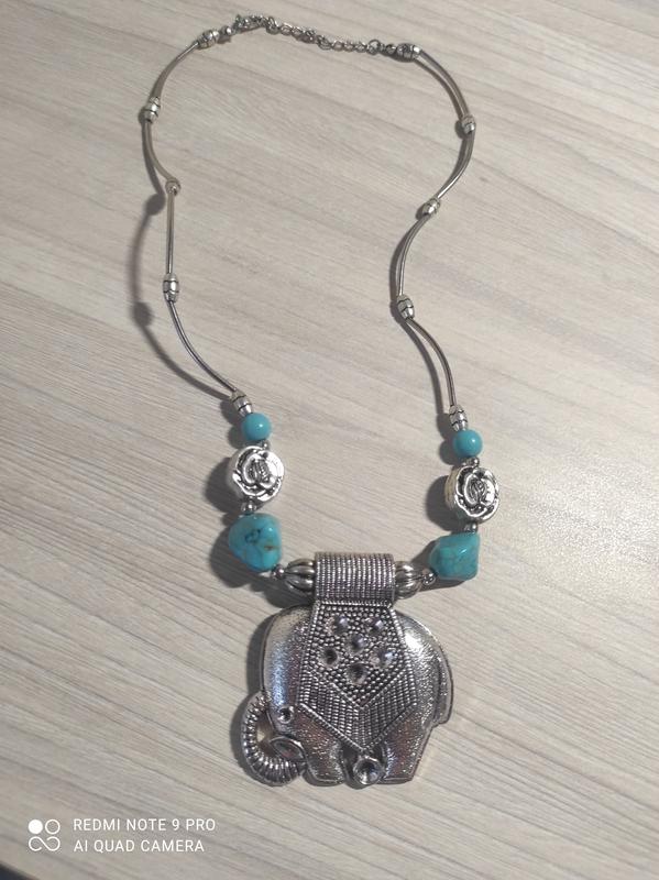 Колье со слоном и камнями бирюзой, металл нержавеющей смотрится очень красиво длинна общая 29 см слон высота 6 см ширина 5 см