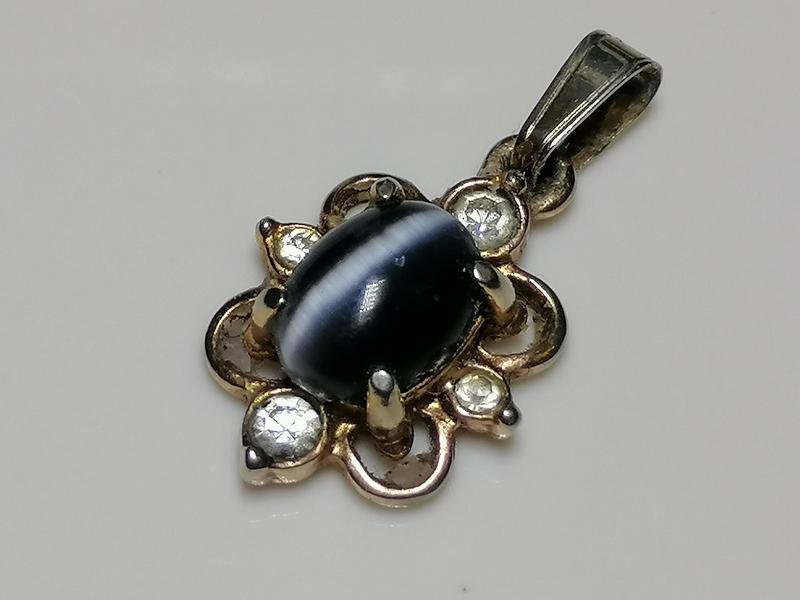 Подвеска Европа.вставка камень кошачий глаз. Состояние б/у. хорошее Есть потертости по металлу с обратной стороны.