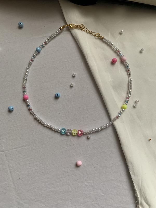 Ручна робота,зроблено з акрилового жемчуга і бусин в пастельних кольорах.Розмір універсальний 35 см.Відправляю будь-якою зручною поштою,по повній передплаті або шафа доставка.Дивиться інші оголошення,є багато варіантів прикрас.