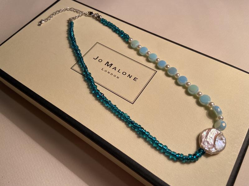 Бижутерная подвеска из качественного индийского бисера с искусственной жемчужиной. Длина 19 см + регулируется.