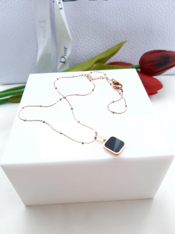 Красивая, изящная подвеска из мед.золота с небольшим квадратным кулоном и вставкой черной эмали.Размер 40+5 см.