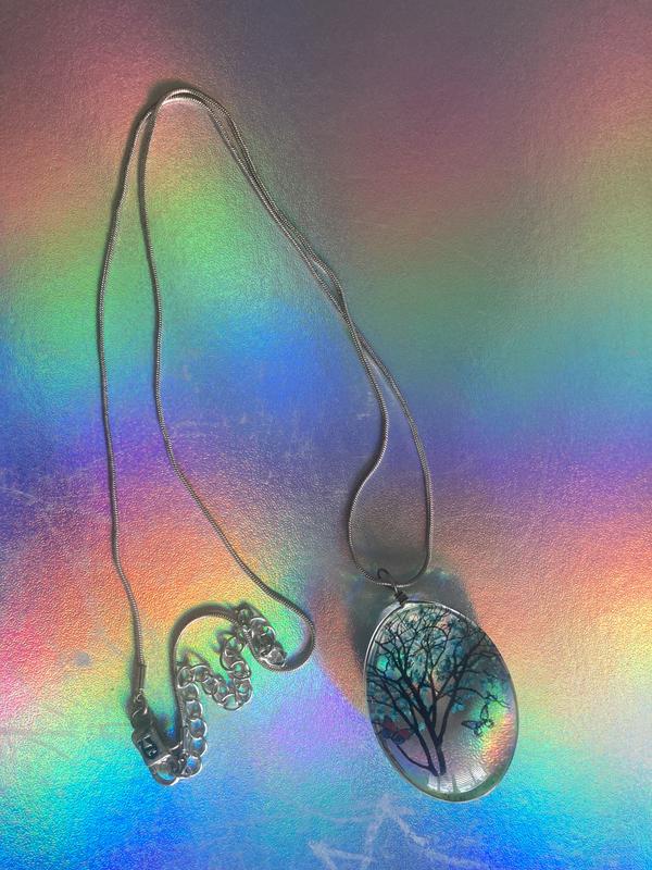 Очень красивый трендовый кулон 5*3см Цепочка 60+7см в серебряном тоне.