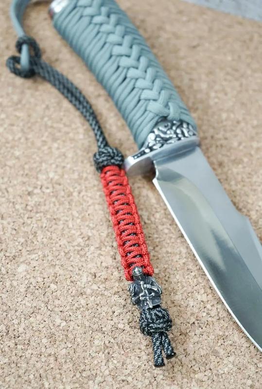 Темляк из паракорда с бусиной черный рыцарь, цвет изделия и бусина под заказ