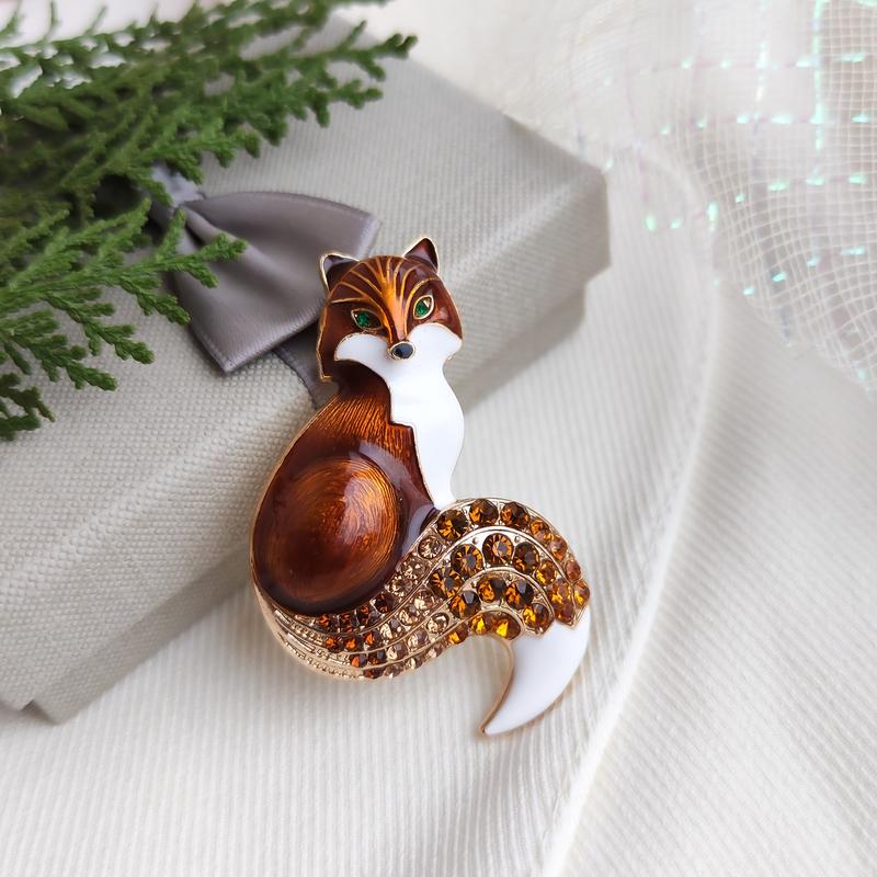 Невероятно красивая брошь в виде лисички станет ярким дополнением вашего образа. В живую смотрится очень круто и дорого. Можно носить и как кулон (есть специальное ушко для цепочки. Размер 3,8х5,4 Материал: экологически чистый бижутерный металлический сплав, эмаль, стразы.