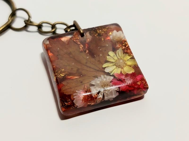 Брилок ручной работы из ювелирной смолы и живых цветов. Можно быть хорошим подарком.