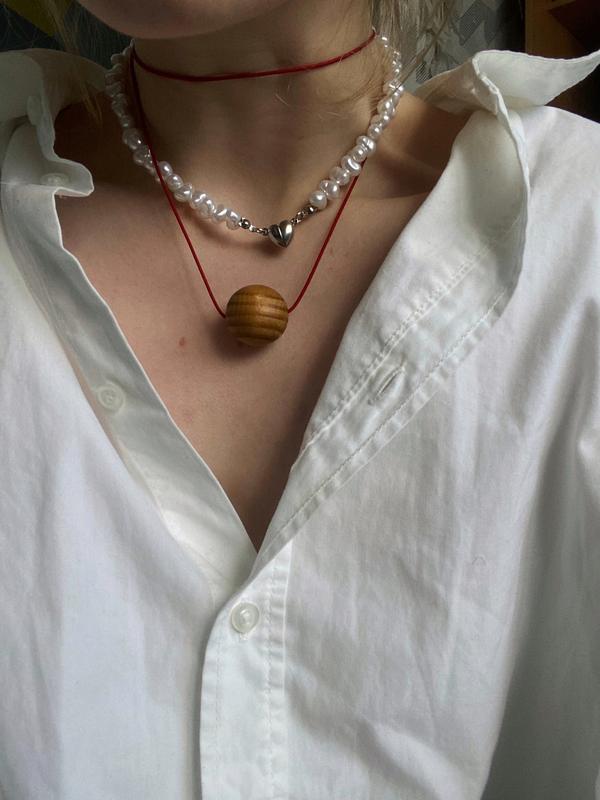 Підвіска-куля з натурального дерева ручної роботи. В комплекті червоний шнурок, довжину можна регулювати 🪢 Діаметр кулі: 3 см