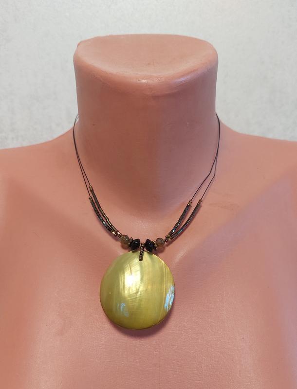 Круглая подвеска цвета хаки , кулон с халиотиса, перламутра