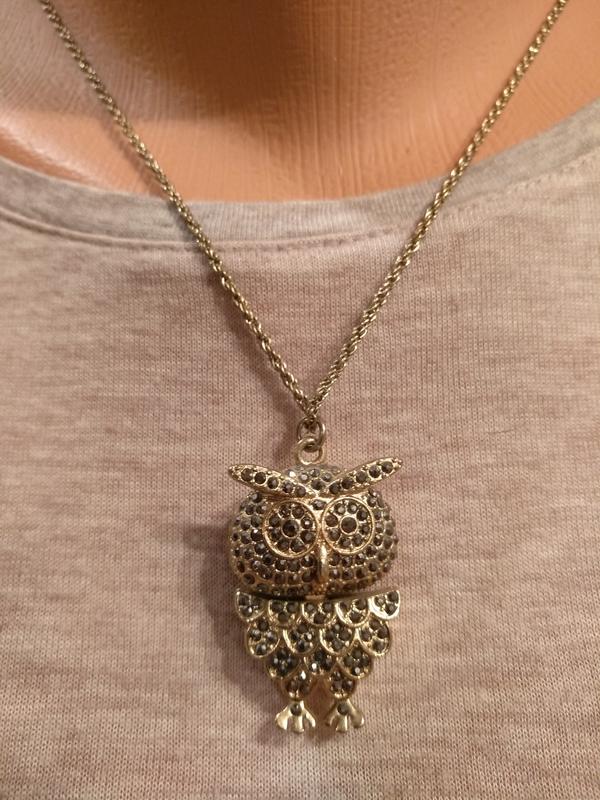 вінтажний підвіс сова 80-ті роки минулого сторіччя на оригінальному ланцюжку довжина ланцюжка 80 см сова з металу покрита марказитами голова і тулуб рухомі розмір 40 мм на 28мм всі деталі оригінальні