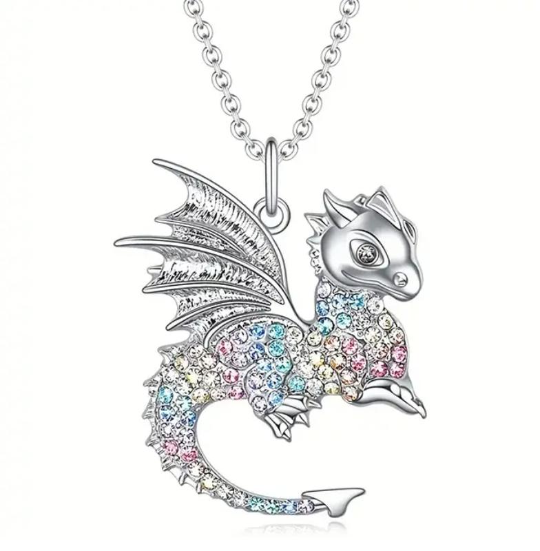 Серебристая подвеска дракончик на цепочке