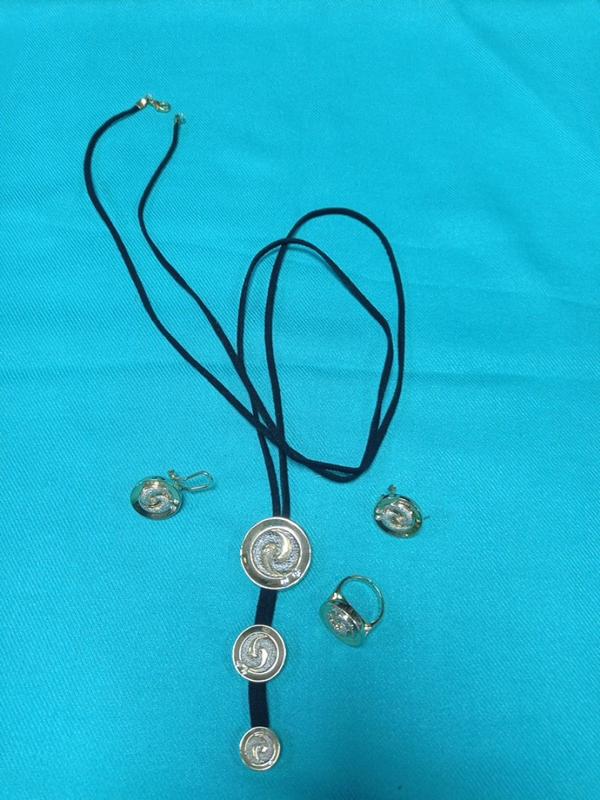 подвеска на длинном бархатном шнурке..длина регулируется..серьги..кольца есть в комплекте.