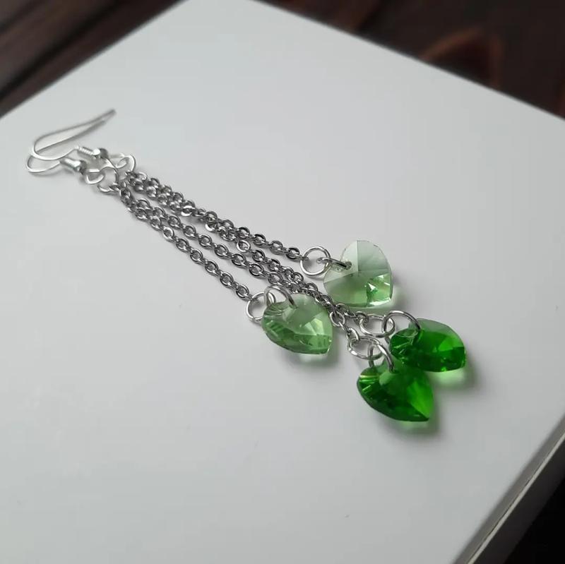 Подвижные яркие серьги из хрустальных сердец.Длина 9 см. Можлевые другие цвета по заказу.