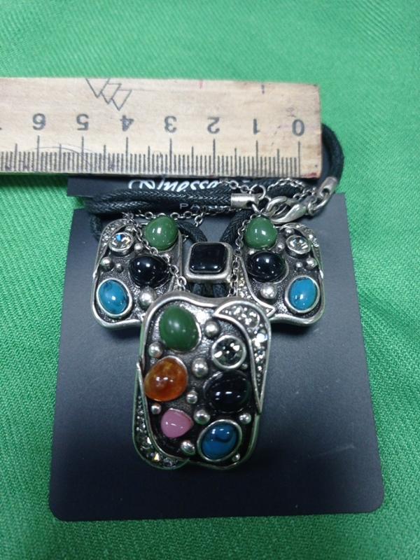 подвеска с разноцветными камушками..комбинированный шнурок с цепочкой..продолговатые..под темное серебро..красив..серьги в комплекте.