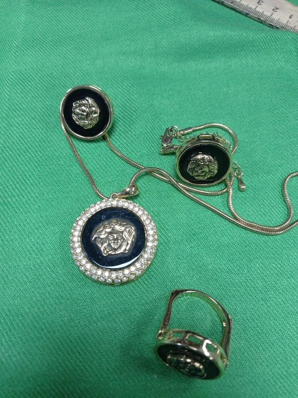 подвеска круглая..золотисто черная.эмаль.. камешки.395 грн..серьги. 395.. кольцо 295 грн.. гладкая золотистая цепочка.
