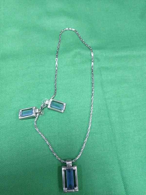 подвеска прямоугольная..с голубым кристаллом..цепочка..серьги в комплекте..