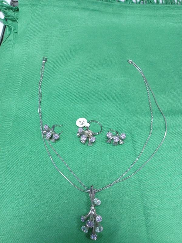 подвеска интересная..светло сиреневое..выпукл..двойная цепочка..кольцо 6 р.серьги в комплекте