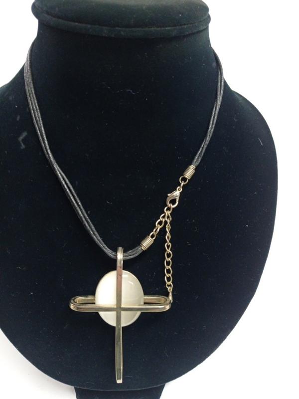 подвеска на шнурах..заменяется цепью при необходимости..красивый обьемный крест с перламутровой вставкой..регулируется.