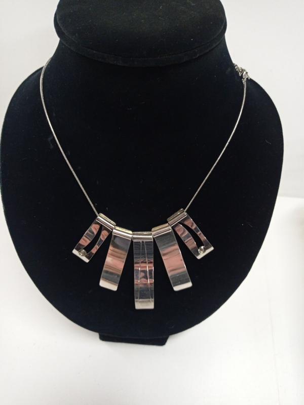 подвеска из изогнутых пластинок..украшена камушками..специальная блестящая резьба..красива.. аккуратная на шее.