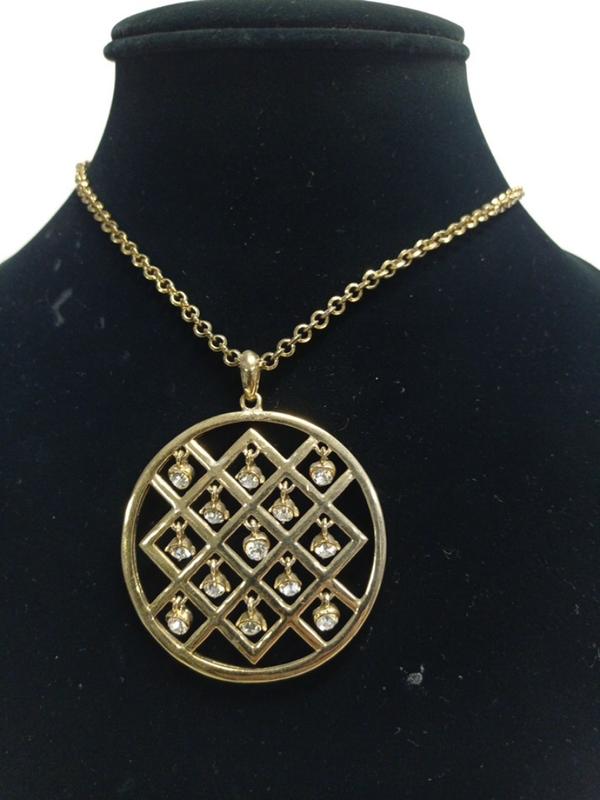підвіска на довгому ланцюжку . кругла..всередині висять рухливі камінці..грають на світлі при русі..кругла..незвична.