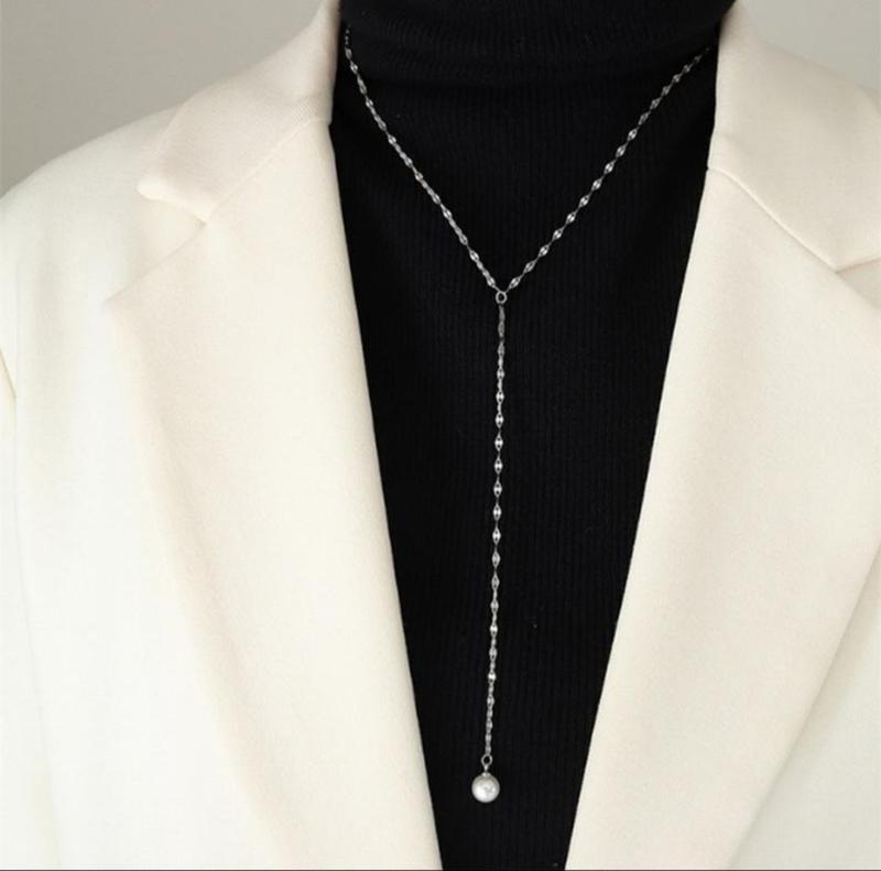 Купить подвеску галстук с жемчужинкой подвеска долгое медицинское серебро нержавеющая стал...