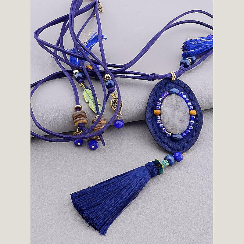Артикул: 032199 Размер кулона: 160х40 мм. Бренд: Hand Made Вес: 34,3 г. Длина: 80 см. Материал: Замш Тип замочка: Карабин(+7см цепочка) Цвет: Синий Цвет2: Зеленый
