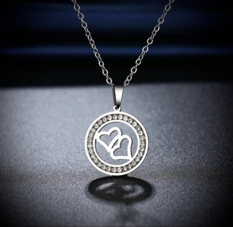 Підвіска два серця із нержавіючої медичної сталі круглий кулончик серце медичний сплав сер...
