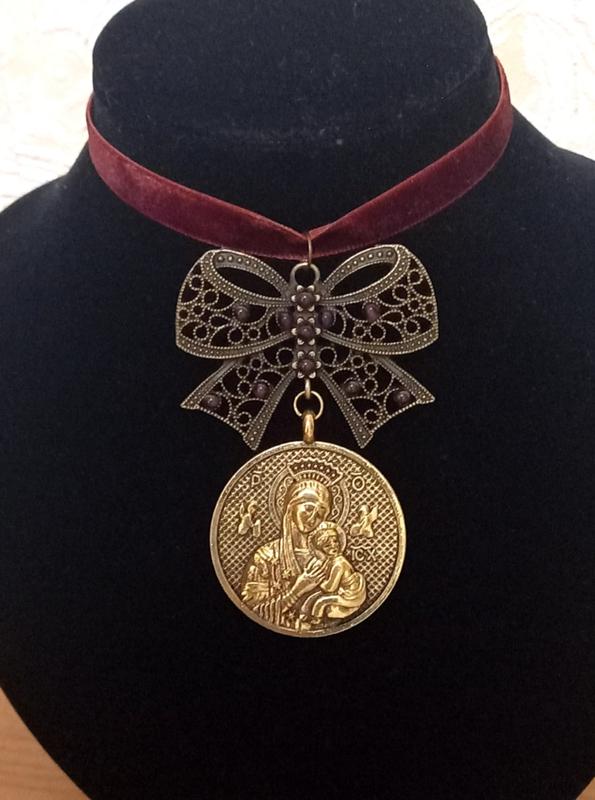 дукач Богородица с ребенком Украшенный камешками Гранат. на осамитовой ленте 65см.