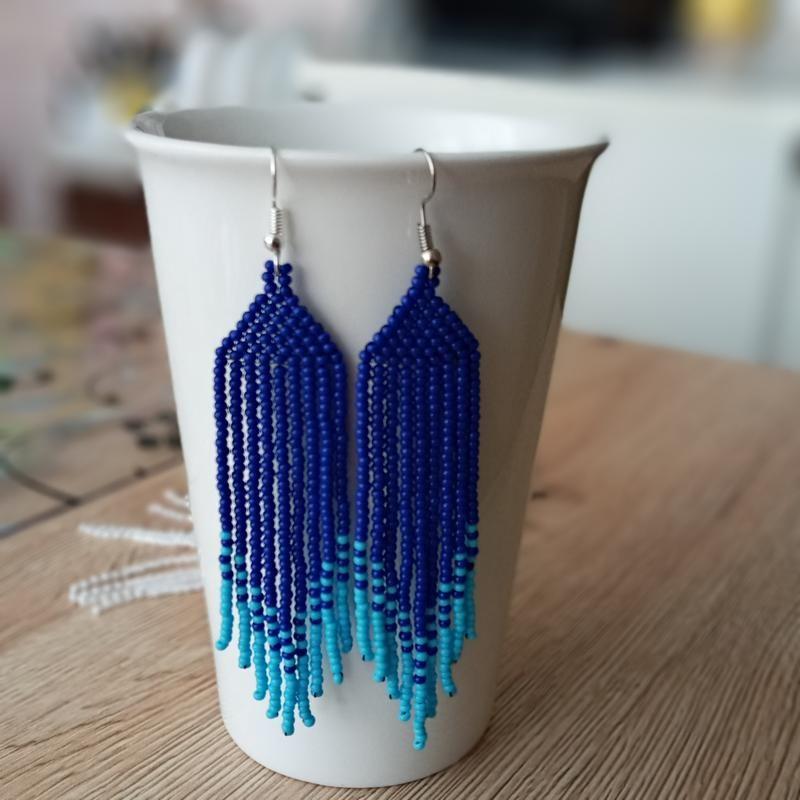 Сережки з чеського бісеру Дополнительные характеристики: Цвет : Синий Материал : Бисер