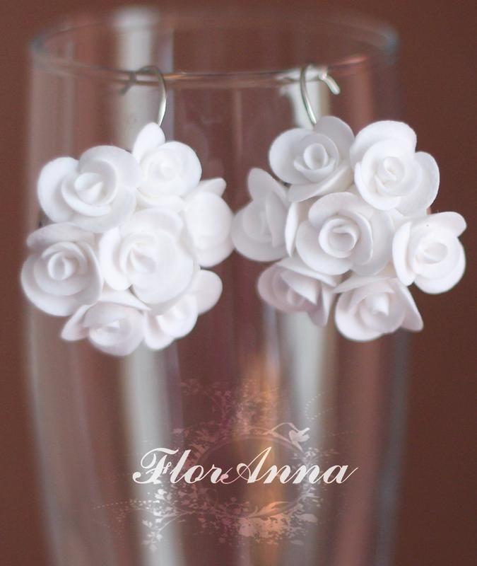 Серьги "белые розы"