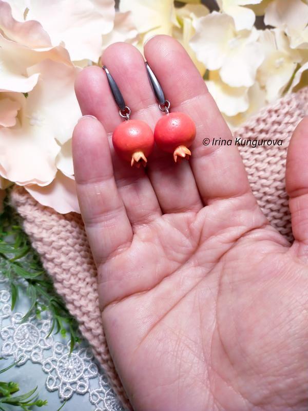 Сережки з підвіской ручної роботи. Матеріали: запечена полімерна глина, фурнітура - мед.сталь. Потребує обережного поводження й зберігання! Запобігати попадання на виріб засобів зі спиртом або розчинником(духи) Дополнительные характеристики: Камни / вставки : Гранат Материал : Медицинская сталь Материал : Полимерная глина