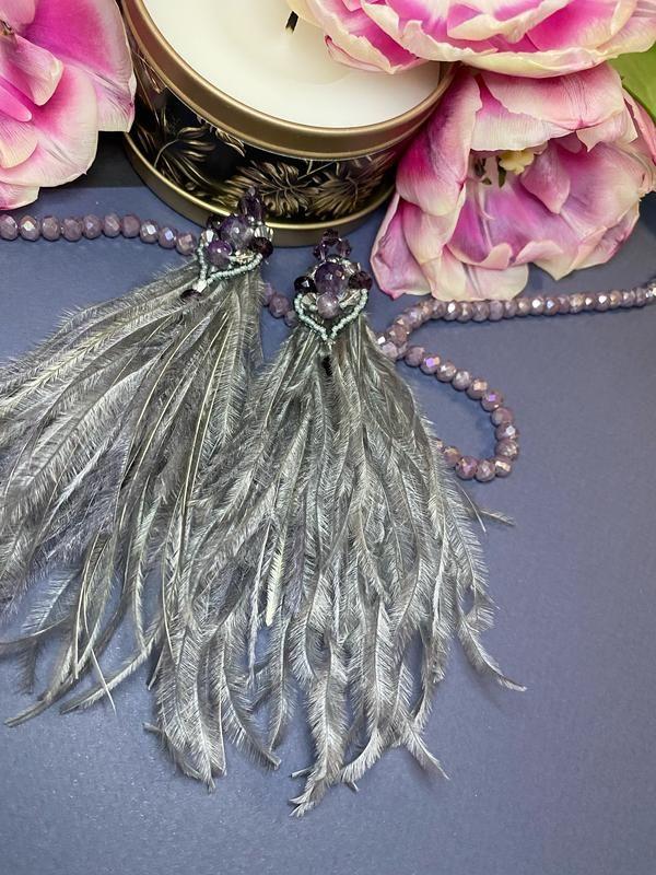 Ніжні невагомі сережки із страусиного пір’я,кришталю та камінця асетисту. З ними ти обовязково засяєш✨ Дуже ніжні та невагомі сережки,застібка-пусети. Дополнительные характеристики: Цвет : Бежевый Камни / вставки : Жемчуг Материал : Перья