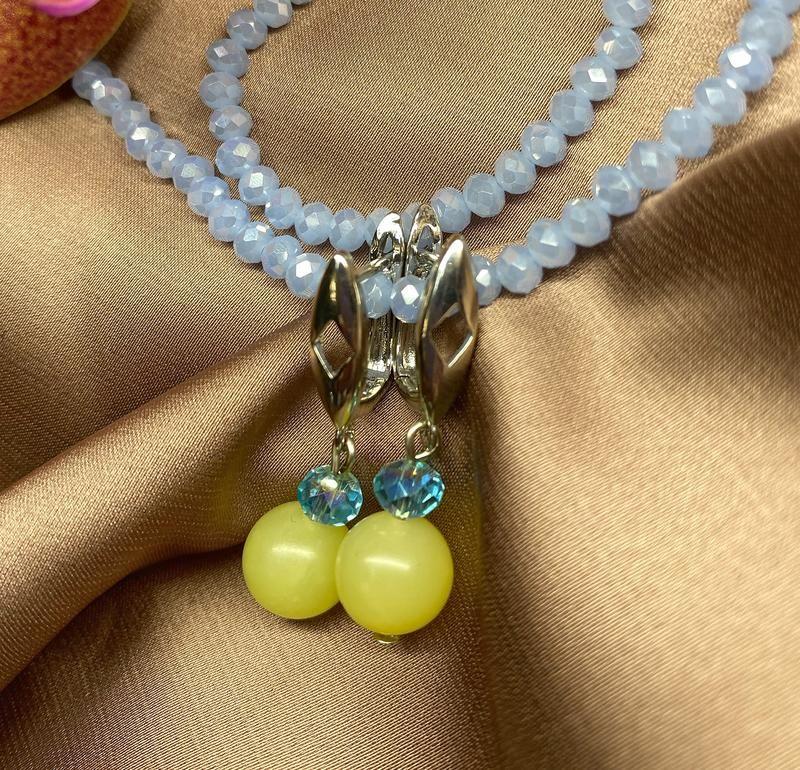 Блакитно-жовті 💙💛сережки з жадеїтом,кришталем