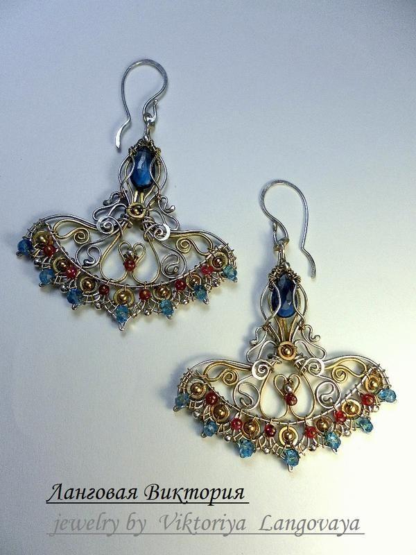 Серебряные серьги ручной работы, с топазами и шпинелью.