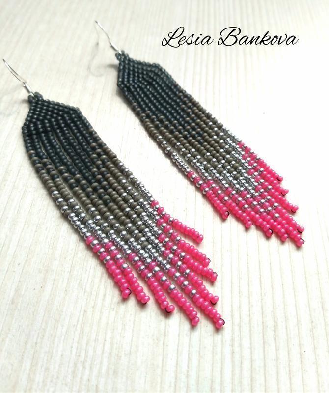 Работа изготовлена из чешского бисера на прочной нити. Ширина 2см.Длина вместе с швензой 11см.Серебряные швензы. Дополнительные характеристики: Цвет : Розовый Цвет : Серый Материал : Бисер