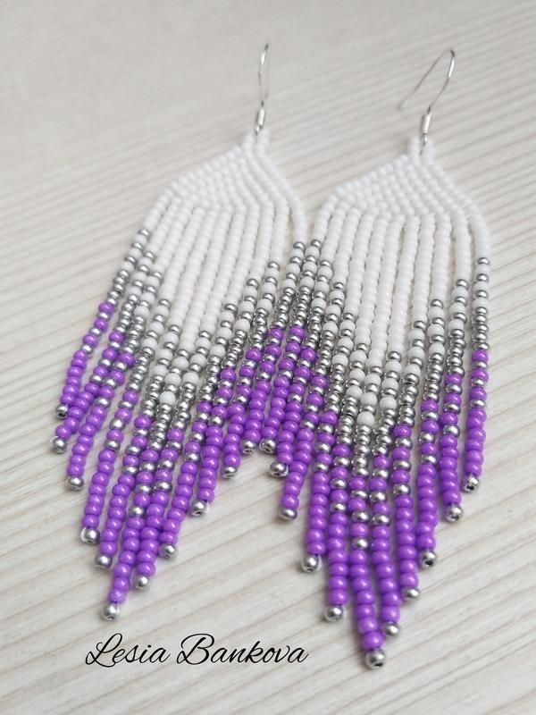 Работа изготовлена из чешского бисера на прочной нити. Серебряная фурнитура. Ширина 2.5 см . Длина 9см. Могу изменить цвета. Дополнительные характеристики: Цвет : Белый Материал : Бисер Товар под заказ