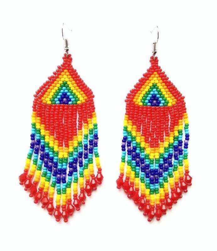 Радужные серьги из бисера серьги из бисера разноцветные лучший подарок